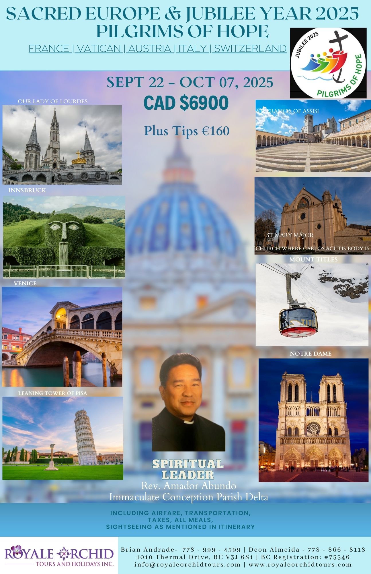 Change of Travel Dates: Any deviation from the original group travel dates may result in additional airfare and taxes.