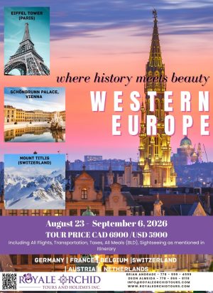 Payment methods: You can pay by Cheque / E-transfer / Credit card payments will incur an additional service fee of 2.5% of the tour price.