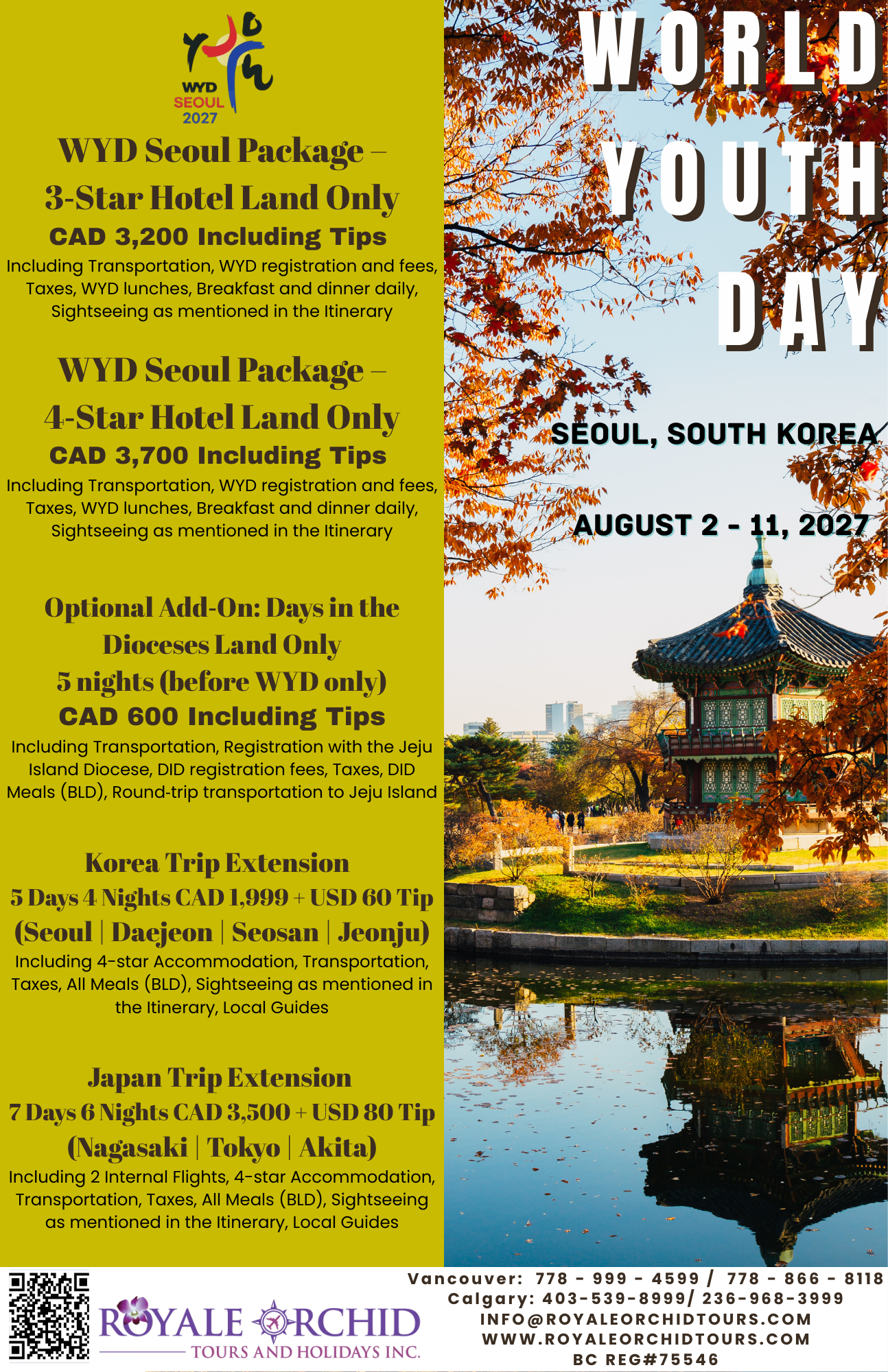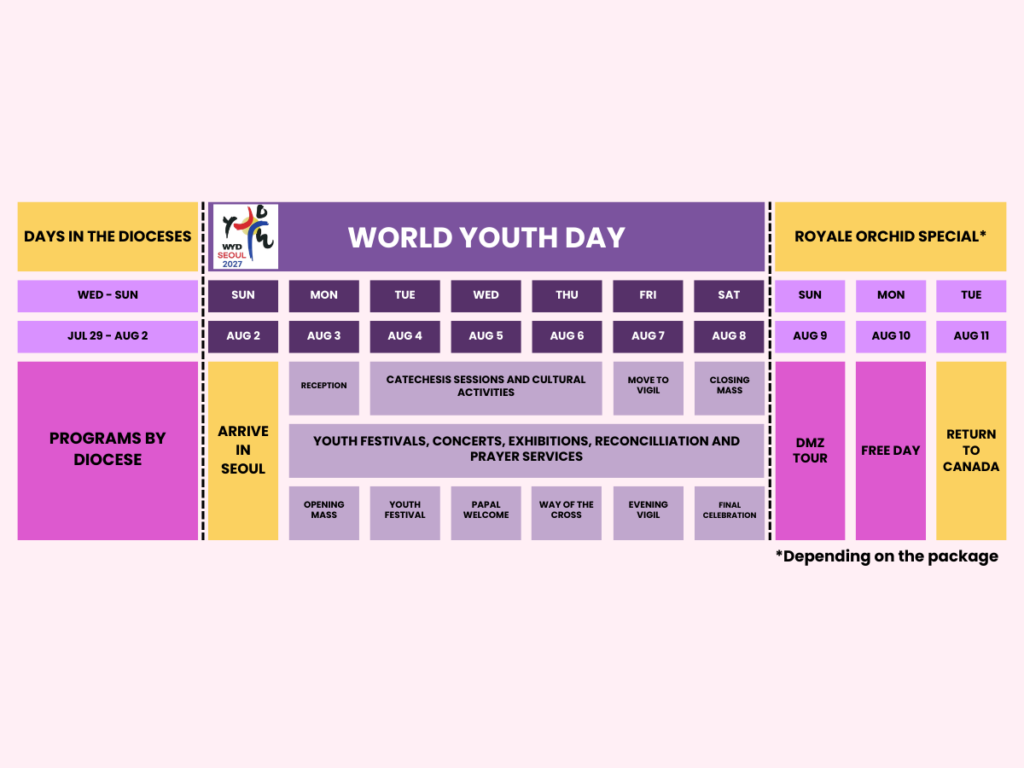Day 3 – 4 AUG 2027 Wednesday: WYD – Catechesis and Youth Festival (B/D)